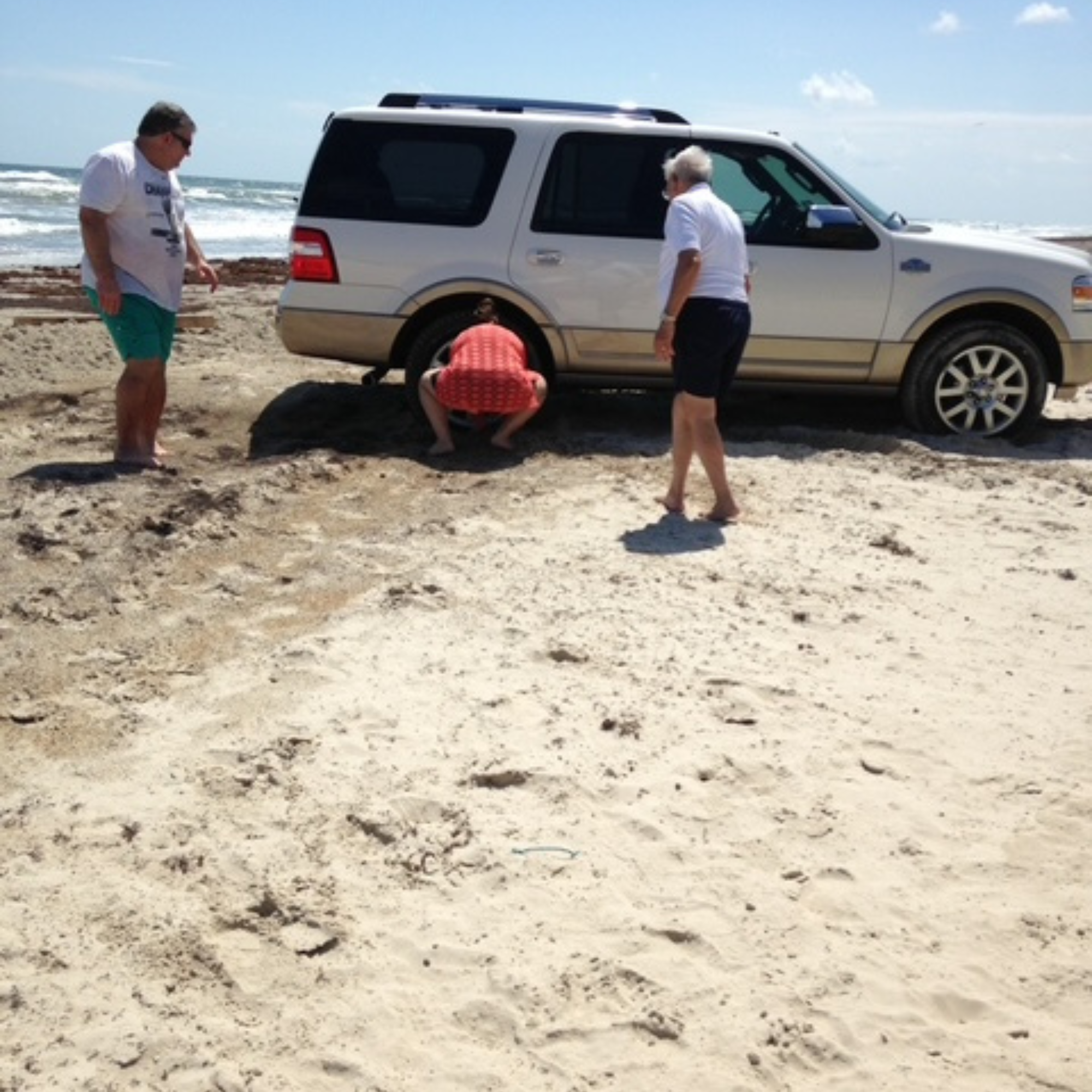 It was my turn to give it a go. I was digging sand away from the tires, determined to “fix it.”